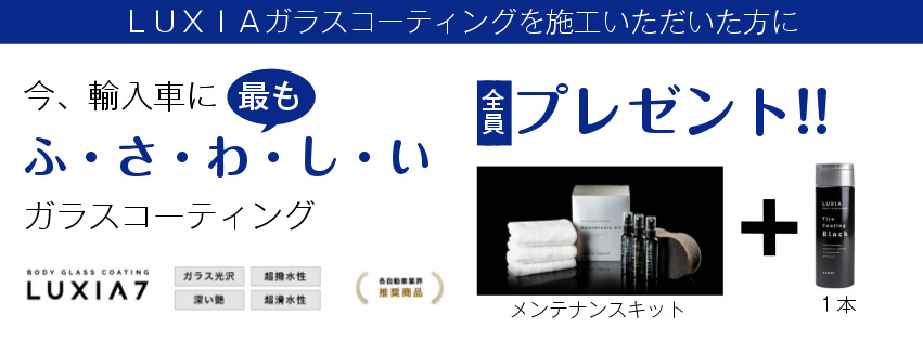 今、カムズファクトリーにて「コーティング施工」をしていただくと、「メンテナンス剤」もプレゼントさせていただいております!